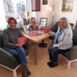 Für Büchereimitarbeiter wurden Stoff-Mehrweg-Mund-Nase-Masken zur Verfügung gestellt und falls ein Büchereibesucher mal keinen entsprechenden Schutz dabei haben sollte, so stehen für Erwachsene, aber auch für Kinder, ebenfalls Stoff-Mehrweg-Mund-Nase-Masken zur Verfügung, welche in den Eigenbesitz übergehen.